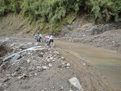 There was some torrential rain overnight, and the result was this huge landslide, the entire length of the mountain where the road was climbing. At the bottom of the hill the mud was as tall as the bike!